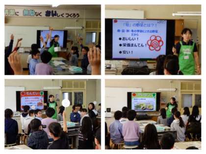11月7日(木)5・6年生は、カゴメの方に来ていただき、旬の野菜を食べていると、体が丈夫になることや野菜をたくさん摂るためにどうしたらいいかなどをクイズに答えながら楽しく学びました。