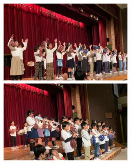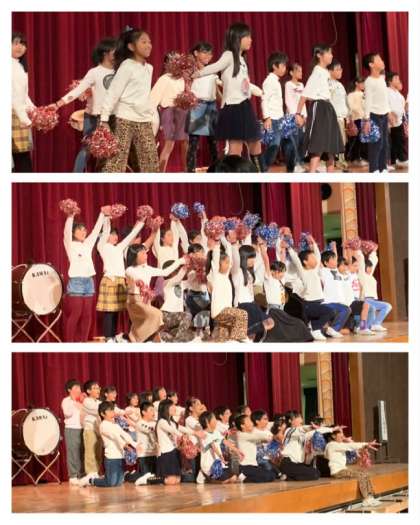 ボディパーカッションや動作を入れた群読など、観ていて楽しい発表でした。