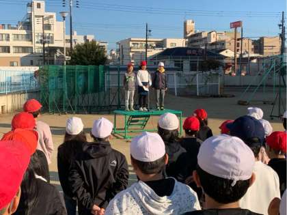 12月9日(月)の朝会で、児童会の代表が12月10日と11日の二日間、ユニセフ募金をすることをお知らせしました。