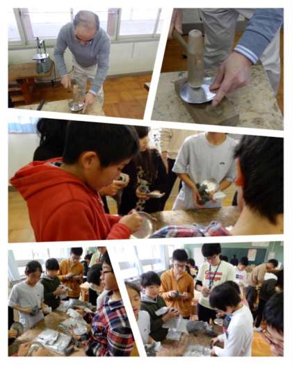 11月10日(火)5・6年生は、大阪錫器の方に来ていただき、伝統工芸の体験学習をしました。