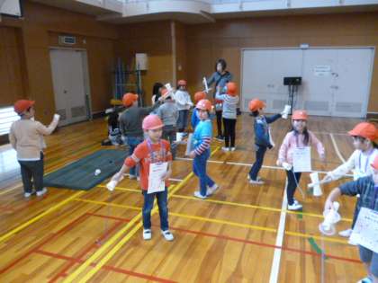 12月11日(水)1年生は、近隣にある幼稚園や保育園の人たちを招待して体育館であきまつりを開きました。