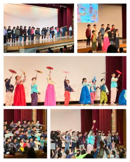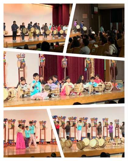 各学年の人たちの応援演技や有志による両面太鼓やサムルノリの演奏を行い、会場が一体となった温かい雰囲気の会になりました。