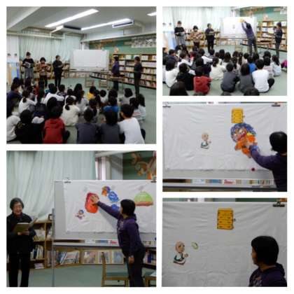 そのあと、今年最後の読み聞かせということで趣向を凝らして、パネルシアターで「三枚のお札」をしていただきました。みんな熱心に聞き入っていました。