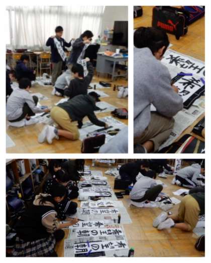 半紙いっぱいに「希望の朝」と書きました。みんなていねいに、しっかり書けていました。