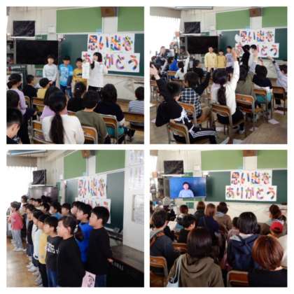 3年生は、3年生になってから学習したことを各教科のグループに分かれて楽しく発表したあと、合唱したり、家族へのビデオレターを視聴したりしました。