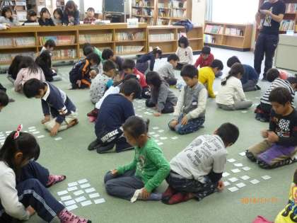 昨日のお昼の時間に図書室で、低学年児童対象の百人一首教室が行われました。たくさんの児童が参加し、楽しそうに活動していました。金曜日には、高学年児童対象の百人一首教室が行われます。