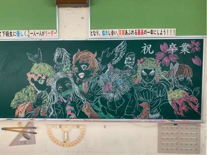 3月18日の卒業式に向けて、教職員で会場の清掃と、祝電の掲示や飾り付けなどの準備をしました。