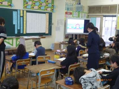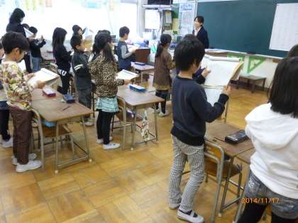 今日の第5校時に2年生の教室で、国語科の研究授業(ビーバーの大工事)が行われました。多くの先生方が、授業を参観しました。