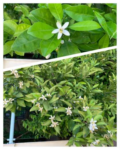一番上の写真の木は、何の木かわかりましたか?この時期、白いかわいい花が咲いているのは、ミカンの木でした。