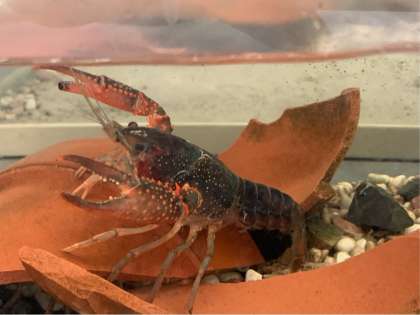 ザリガニの写真をよーく見て、スケッチしてみましょう。特に、2年生の人は、がんばってかんさつしてスケッチしてください。