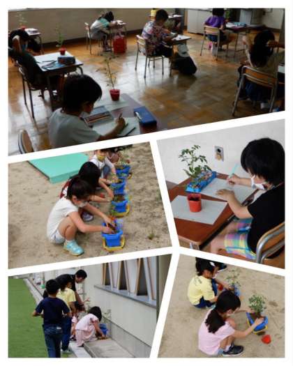 2年生は、生活科「花や やさいを そだてよう」の学習のため、ミニトマトの苗の観察スケッチをしたあと、植木植に植え替えました。いっぱい実をつけてくほしいです。