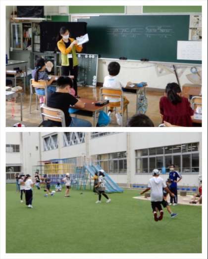 5年生は、たっぷり課題の答え合わせをしたあと、中庭で縄跳びをして体を動かしました。