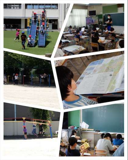 休み時間には、すべり台や鉄棒、うんていで元気に遊んでいました。
