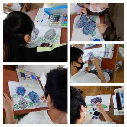 6年生は、図画工作科でアジサイの花を描いていました。