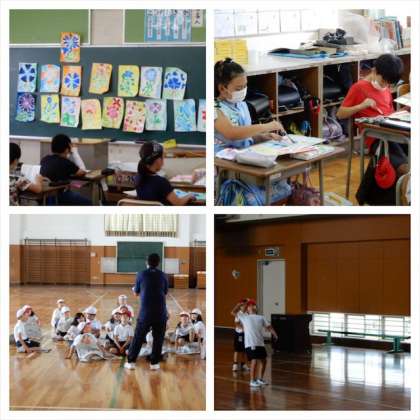 その下は、4年の図画工作の様子です。パスや絵の具を使って花の絵を描いていました。