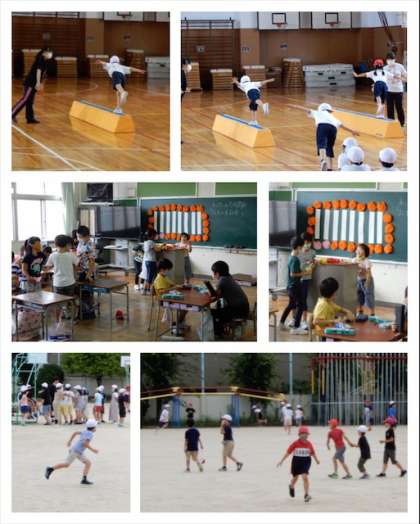 1年は、体育の平均台遊びの学習で、台の上で上手にバランスを取っていました。