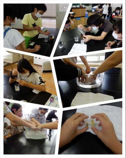 6年は、理科のヒトの体の学習で、消化のしくみについて実験していました。