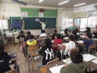 5年と1年の算数科の学習の様子です。5年は、「合同な図形」について、1年は、「どちらが ながい」の学習をしていました。