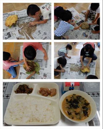 1年は、学習園で育てていたヒマワリから種を取り出しました。一つのヒマワリの花からたくさんの種が取れたことに驚いていました。