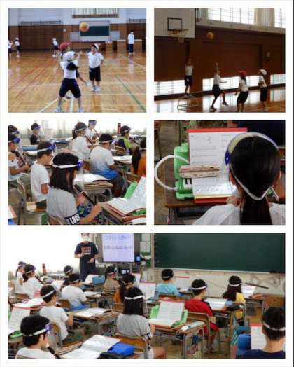 3年は、体育科ではポートボールの練習をチームごとにしていました。また、音楽科では高い方のドの音が入った曲をリズムよく吹いていました。