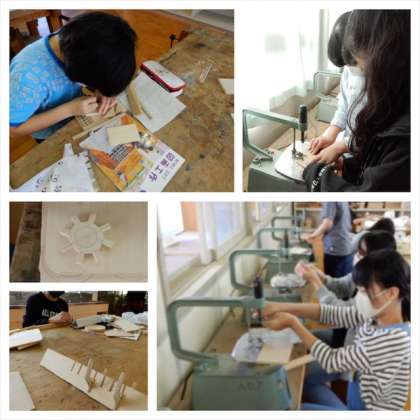 6年生は、電動糸のこを使って個性あふれる船を制作していきます。