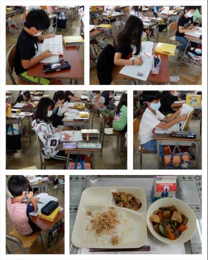 今日の給食の献立は、「ごはん、牛乳、豚肉のねぎ醤油焼き、ふきよせ煮、ツナ大豆そぼろ」でした。
