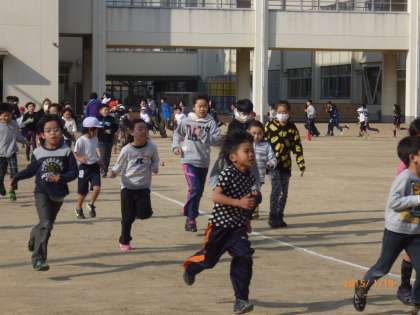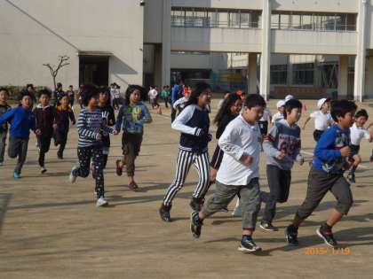 昨日から、耐寒マラソン大会に向けての練習が始まりました。20分休みに全校児童が、「矢田北体操」をした後、7分間走ります。1月31日(土)の本番に向け練習しています。応援よろしくお願いします。