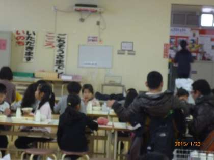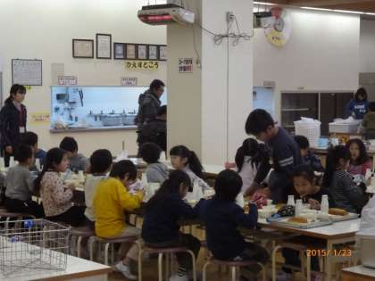 あかおに作業所の方においでいただき、2年生との交流給食を行いました。