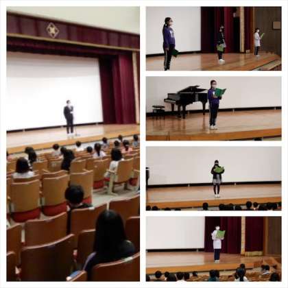 学校長からの話のあと、6年生の代表が前期で取り組んだことと後期に向けて頑張りたいことを立派に発表しました。