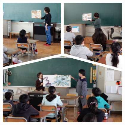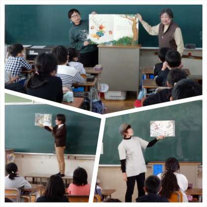 6年と4年では、大型絵本での読み聞かせがあり、語りとともに迫力ある絵でお話の世界に引き込まれました。