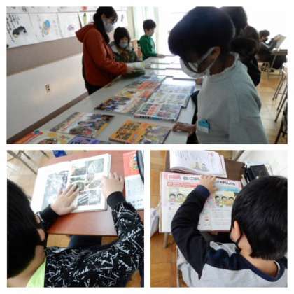 4年は、国語科「くらしの中の和と洋」の学習で、服装や食文化などの和と洋の違いについて図書の本などの資料からまとめる学習に取りかかっていました。
