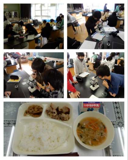 6年は、理科の学習で、様々な岩石の成分などを顕微鏡を使って調べていました。