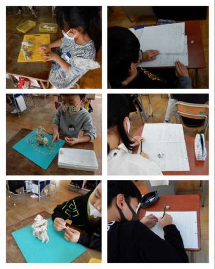 1年は、粘土で思い思いの動物を題材に作品づくりをしていました。