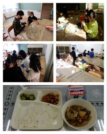 今日の給食の献立は、「ごぱん、牛乳、鶏肉と野菜の煮もの、じゃこ豆、あっさりきゅうり」でした。