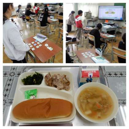 6年は、外国語科の学習で建物の名前ビンゴをしていました。リーチになったら起立します。