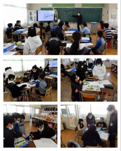 5年は、理科「水の流れるはたらき」の学習の発展として、川が氾濫した時にどのような装置があれば水害を防げるかをレゴのWeDo2.0というプログラミング教材を使ってグループで考えました。