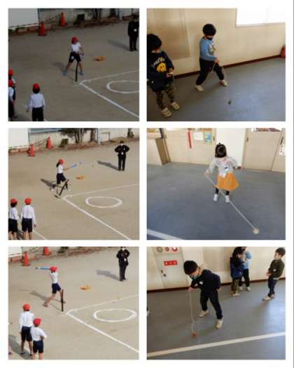 1年は、生活科で昔あそびのコマ回しをしていました。だんだんコツをつかんで上手に回せるようになってきました。