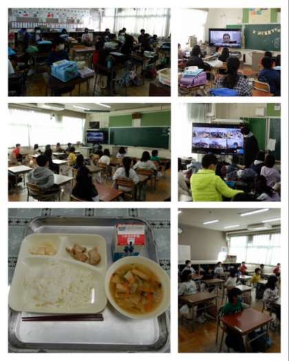 今年最後の給食の献立は、「ごはん、牛乳、鶏肉のしょうゆマヨネーズ焼き、五目汁、かぶのゆず風味」でした。