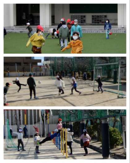 休み時間には、時折雪が降る寒さの中でも元気に中庭や運動場で遊んでいます。