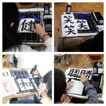 5年は、今年の漢字一文字を毛筆で書いていました。