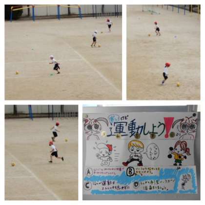 1年は、体育科の学習でサッカーボールを使ってドリブルリレーをしていました。