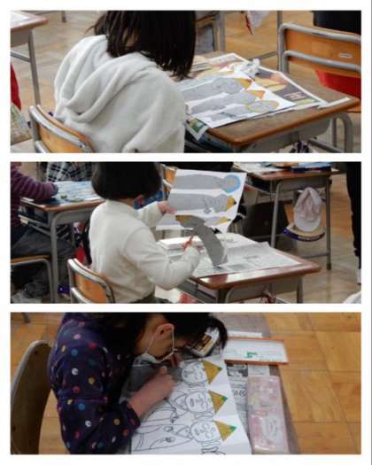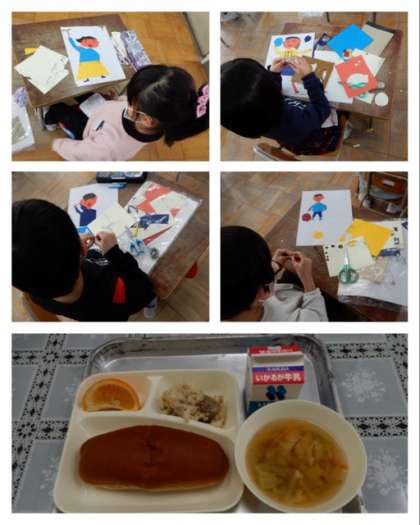 1年は、カラー紙版画で遊んでいる自分を表していました。
