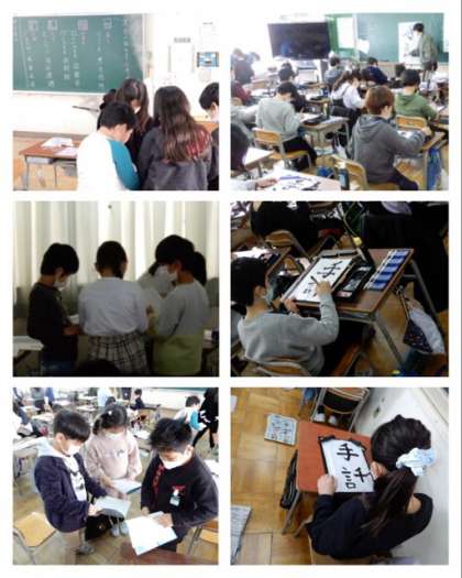 4年は、「手話」という字を習字で書きました。