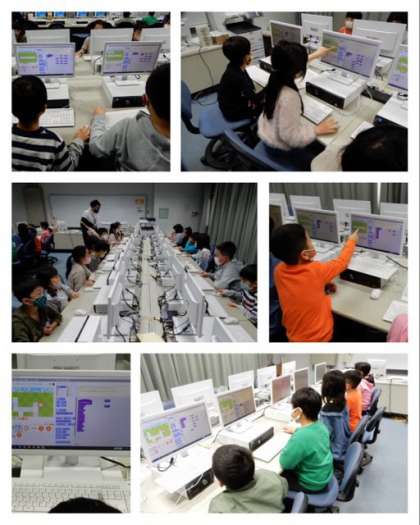 2年は、パソコン教室でスクラッチというソフトを使って、画面上の女の子の家から学校までの道のりをプログラミングして到着させました。右や左に曲がって、何歩進むのかをマスを数えながらプログラムしていました。