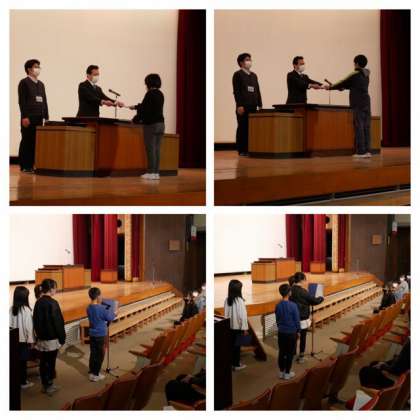 今日は、卒業式のリハーサルを行いました。少し緊張気味でしたが、しっかりと決意表明したり、呼びかけをしたりできました。5年生も在校生代表として贈る言葉の練習をしました。
