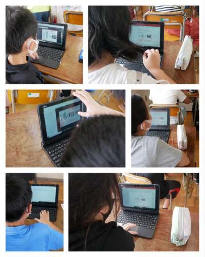 5年は、タブレット端末を使ってインターネット検索で自分の名前の漢字の語源などを調べました。