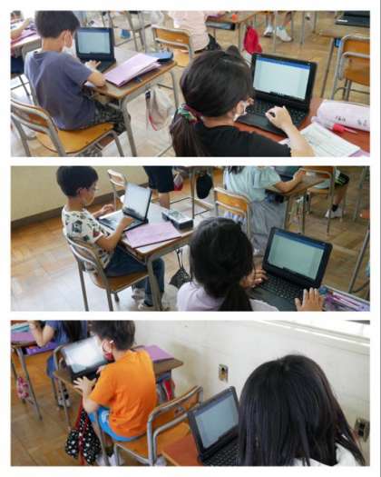 3年は、タブレット端末のキーボードを使ってローマ字打ちの練習をしていました。