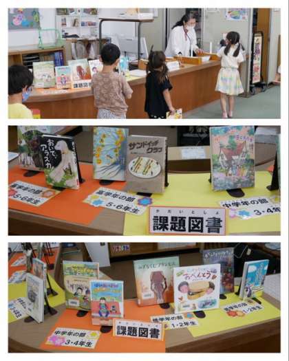 学校図書館では、今年度の課題図書の貸出を始めました。いろいろな本に興味をもってほしいです。