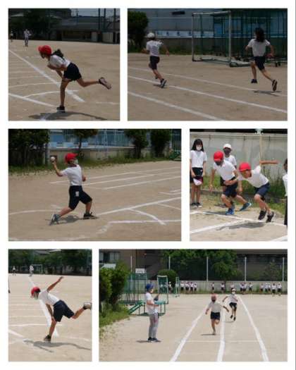 今日からスポーツテストが始まりました。まずは、1年生から6年生までソフトボール投げの記録を測定しました。写真は、1年・2年・6年の様子です。6年生になると、投げ方も全身を使ったフォームで遠くまで投げていました。