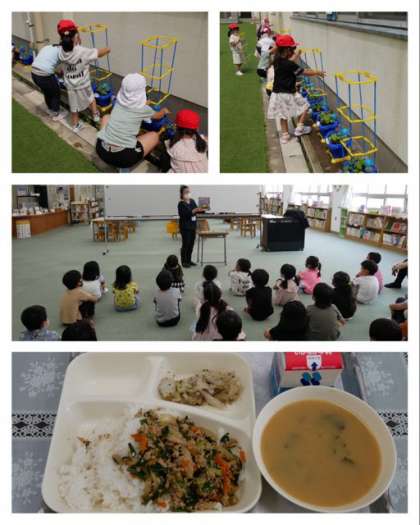 1年は、アサガオが順調に成長し植木鉢に支柱を立てました。国語科の図書の時間には、図書館補助員さんに本の読み聞かせをしていただき、耳を澄ませて聴き入ってました。